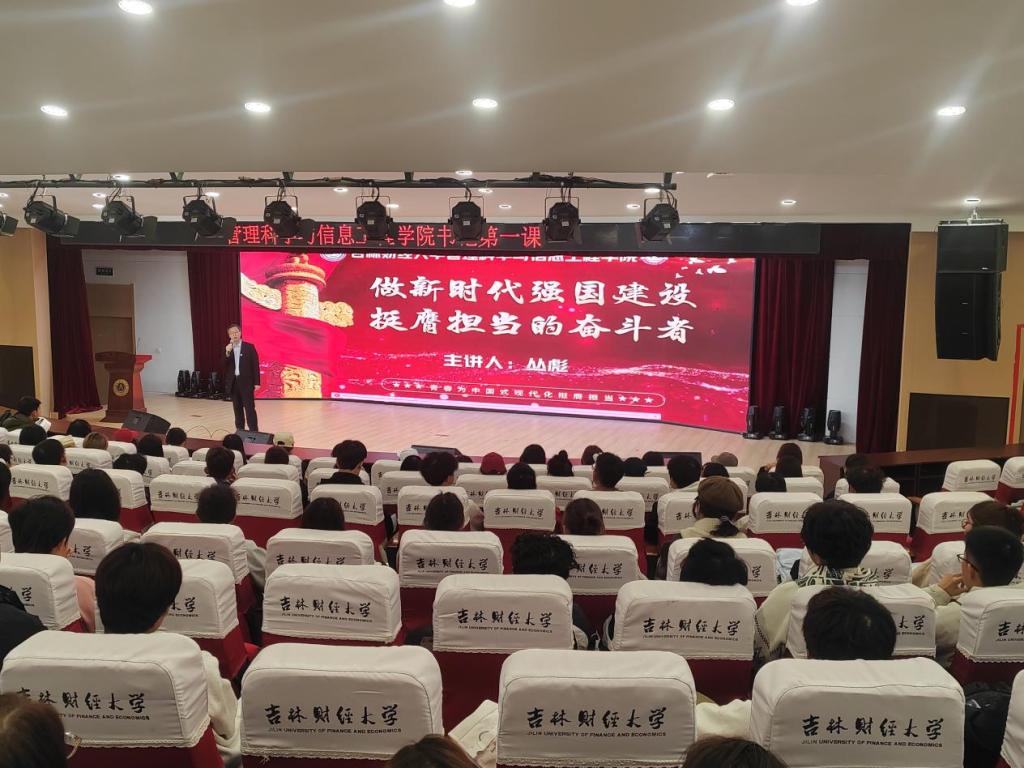2025年10月11日,女王调教 党委书记丛彪在学院2025级新生入学教育大会上,以“做新时代强国建设挺膺担当的奋斗者”为题作主题报告,勉励新生坚定理想信念、勇担时代使命,努力成长为堪当民族复兴大任的高素质财经信息化人才。
