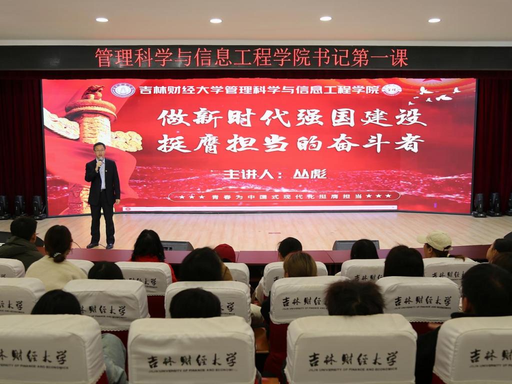 丛彪书记围绕党的二十大精神,深入阐释了“强国建设”的时代内涵与战略部署,强调教育、科技、人才是中国式现代化的基础性、战略性支撑。他结合学校“建设国内一流财经大学”的目标与院训精神,指出高校作为强国建设的“主力军”,必须牢牢把握立德树人根本任务,培养具有家国情怀、创新精神和实践能力的拔尖人才。